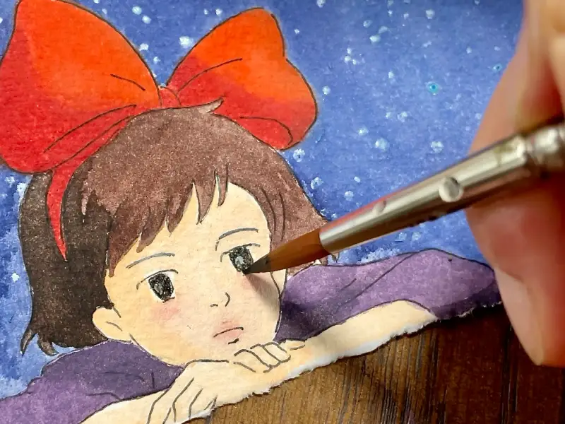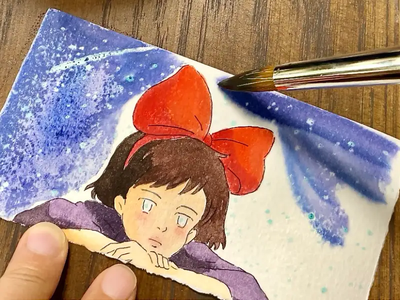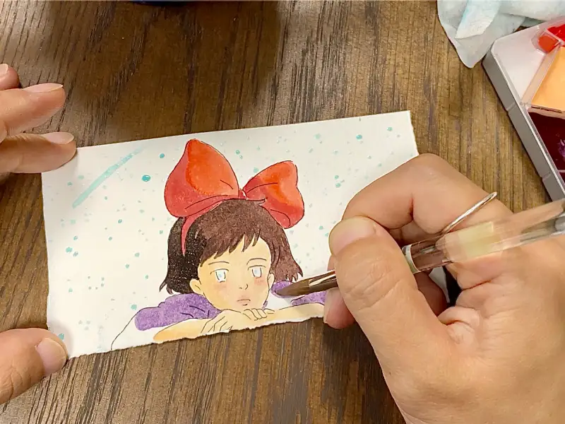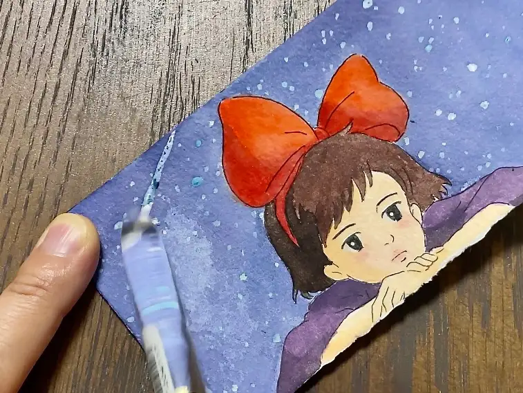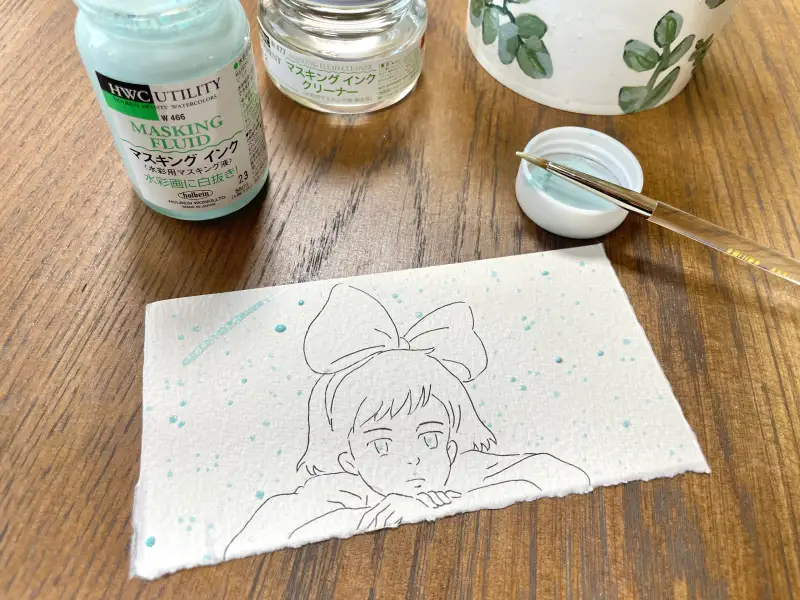 홀베인 500R 브러쉬 뒤 꽁지로 잘 마른 마스킹 잉크를 문질러서 벗겨주면 완성!