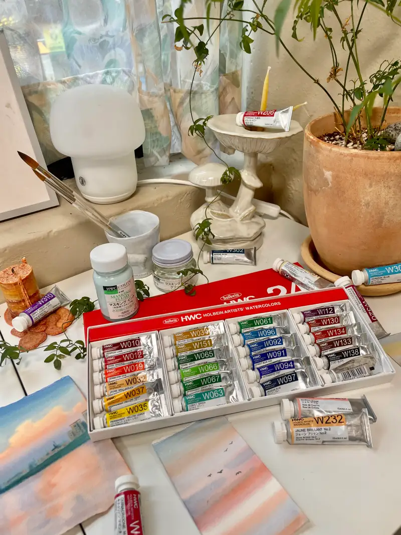 홀베인 수채물감 24색이면 웬만한 색 다 만들 수 있어요.