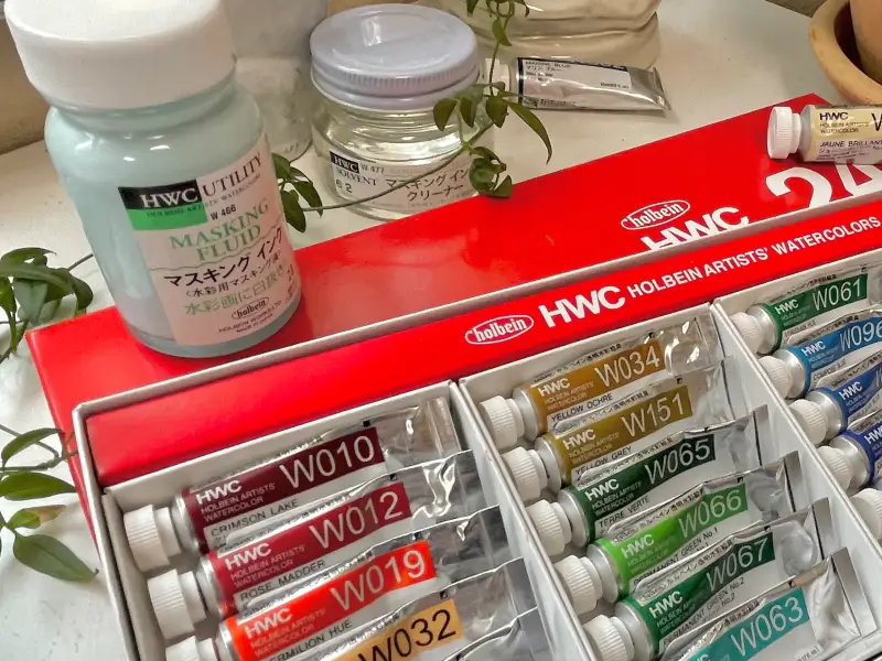 소개드릴 제품은 홀베인 수채물감, 홀베인 500R 수채 브러쉬, 홀베인 마스킹 잉크, 홀베인 마스킹 잉크 클리너입니다.