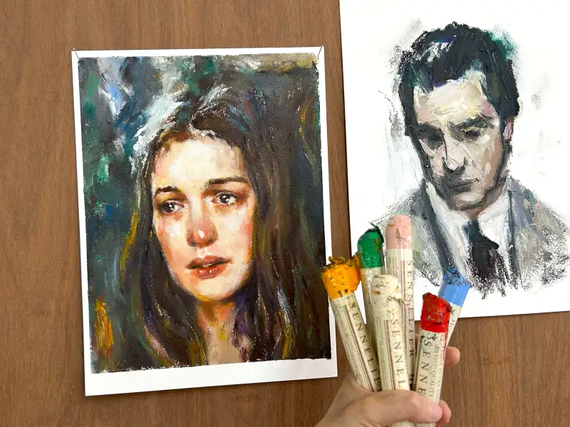 이번에는 시넬리에 오일 스틱으로 아르쉬 유화용지 위에 인물화를 그려보았습니다.