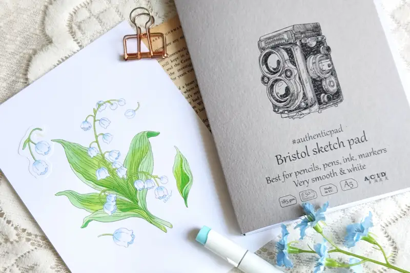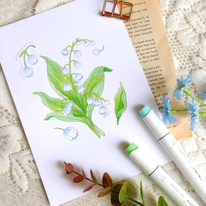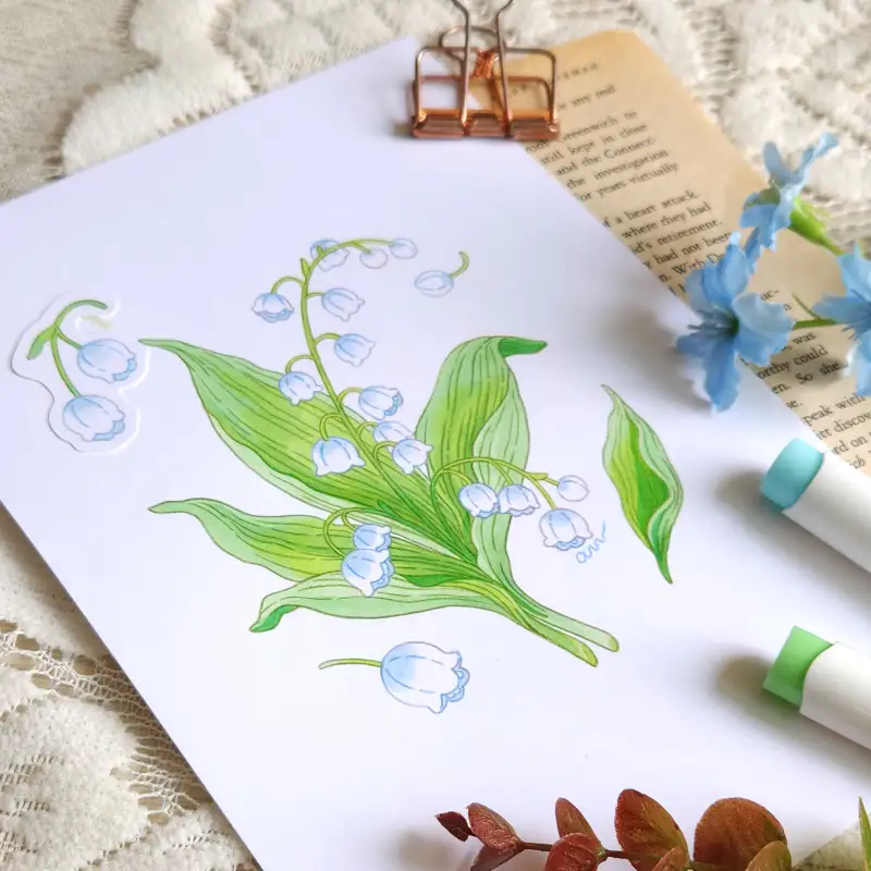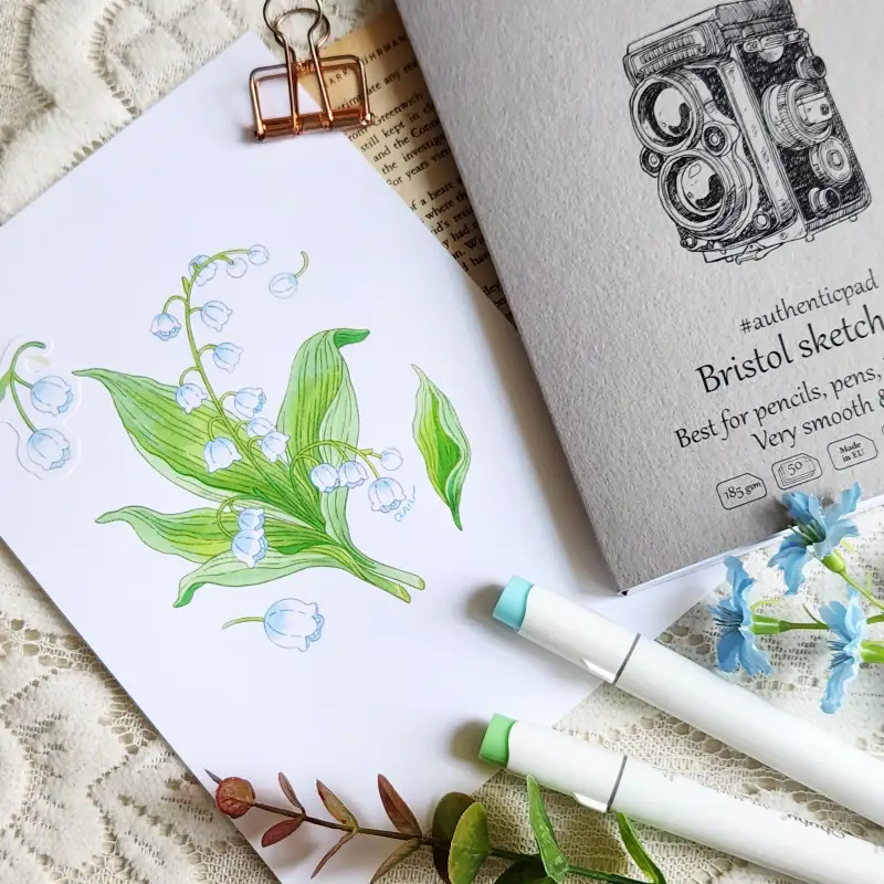 브리스톨 패드에 마카로 은방울 꽃을 그려보았는데요