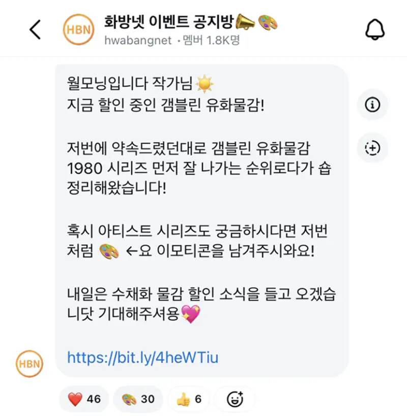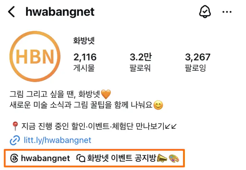 (공지방은 화방넷 인스타그램 프로필에서 들어갈 수 있어요!)