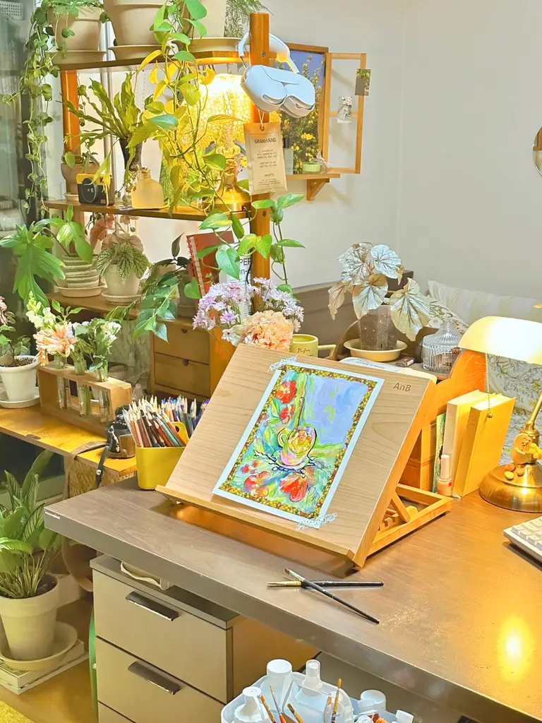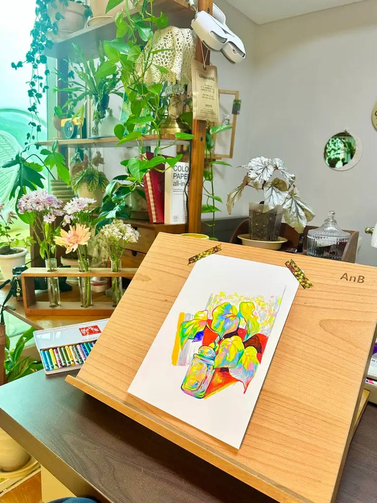 'AnB 판넬형 테이블 이젤' 위에서 색연필, 네오컬러2, 아크릴 물감으로