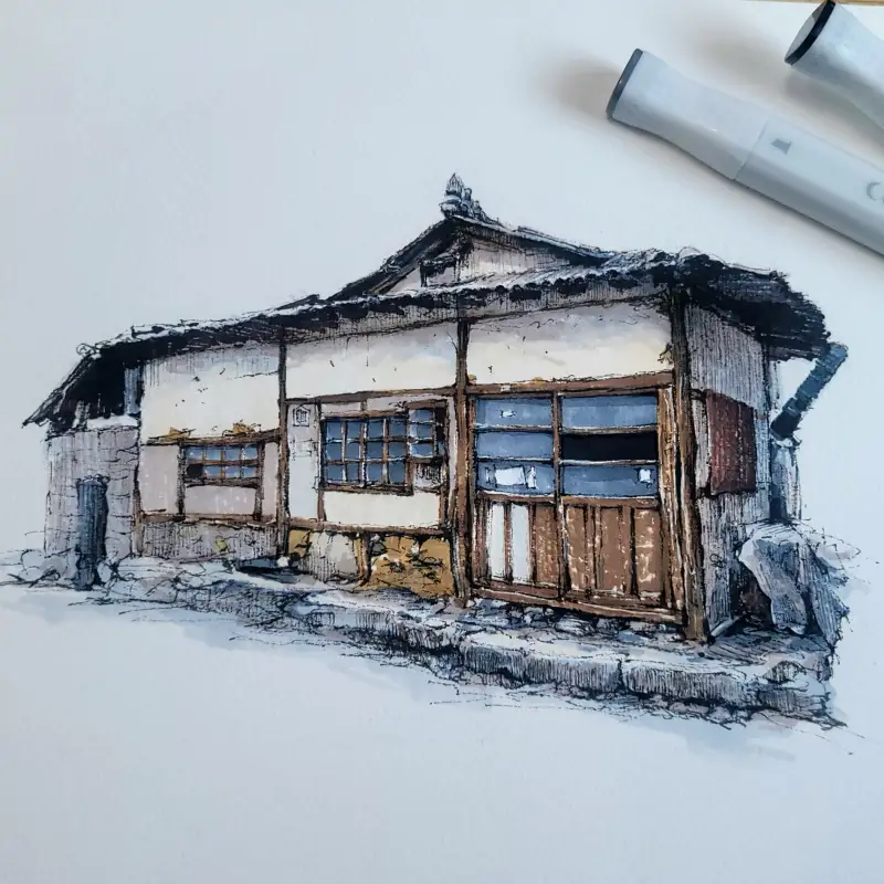 화실로 도착한 마카를 개봉하니 27색 칼라가 방긋 화실샘들과 그려보기로 하고 오늘은 중학교미술선생님이신 리보나샘께서 개시를 해주셨다. 제한적인 칼라이지만 서로 믹스해서 멋진 어반스케치를 풍경을 완성해주셨다는.. 계속해서 다흔 샘들의 그림도 올려보고자 한다.