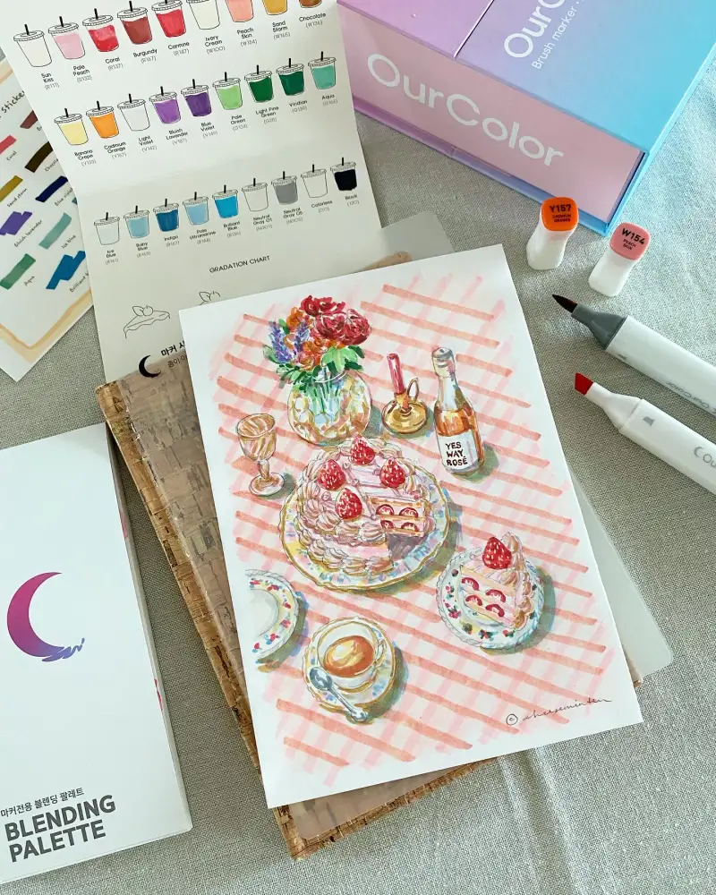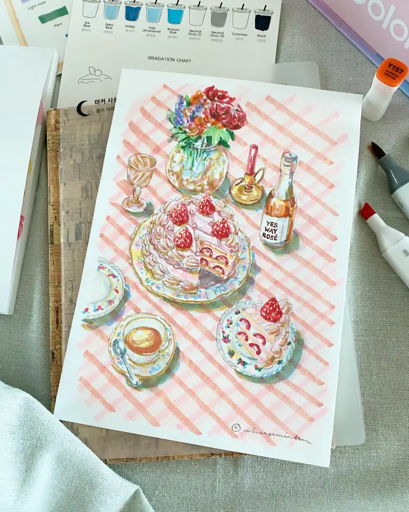 색깔이 너무 차분해서 이번에 예쁜 테이블 세팅을 그려보았습니다~