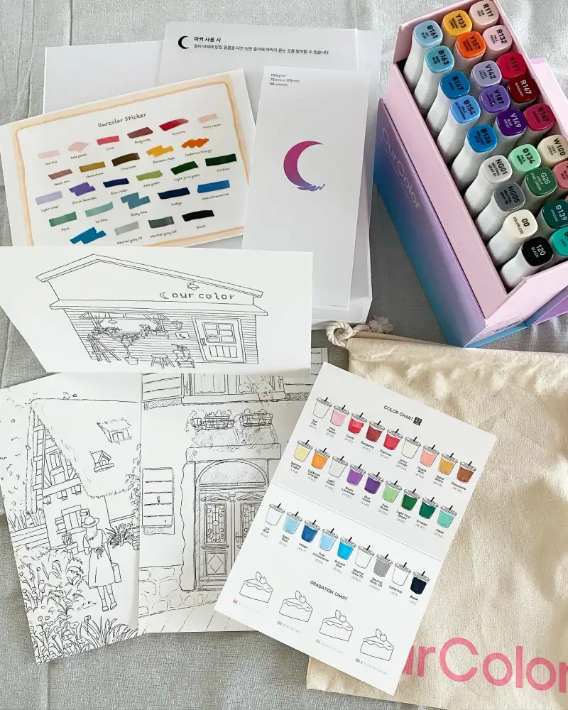 마카를 사용할 때 라이트 미드 다크 톤을 모두 있어야 될 것 같아요. 그래서 이 세트 안에 27색만 있는데도 라이트 미드 다크 톤을 적당하게 있어서 간단한 그림 그릴 때 아주 충분할 것 같아요. 그리고 브러쉬 부분을 품칠이 좋고 부드러워서 사용하기가 편하더라고요!