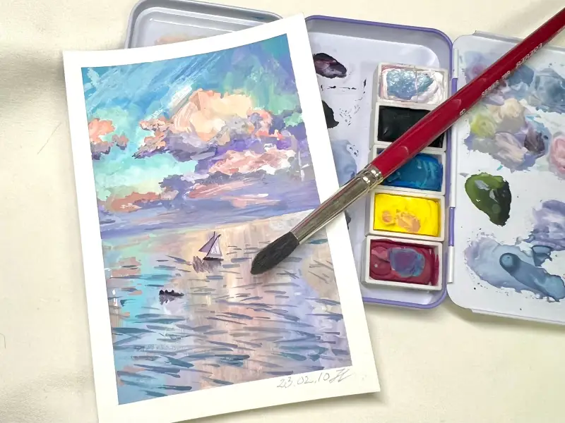 원작은 유화인데 터치감과 색감을 간편하게 따라해보고자 과슈로 해봤어요!
