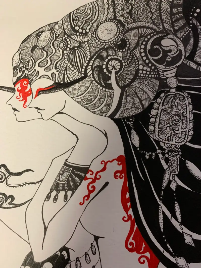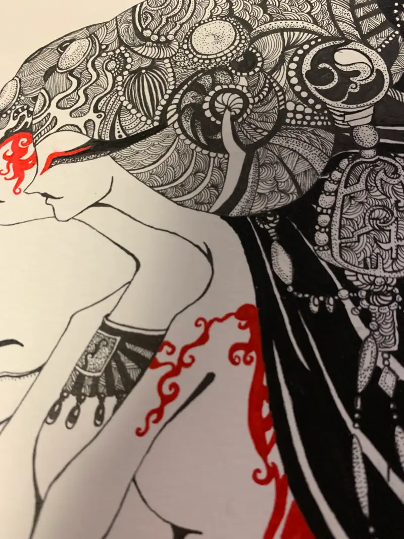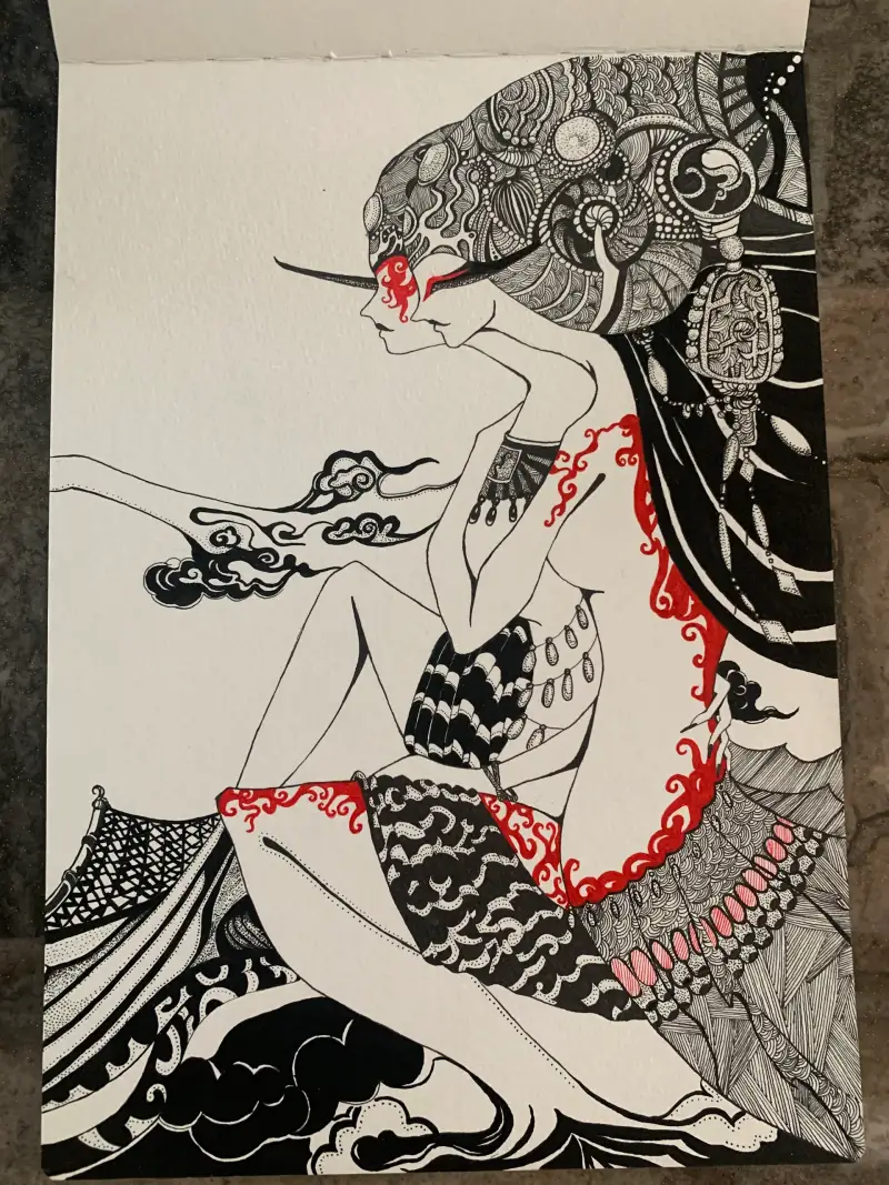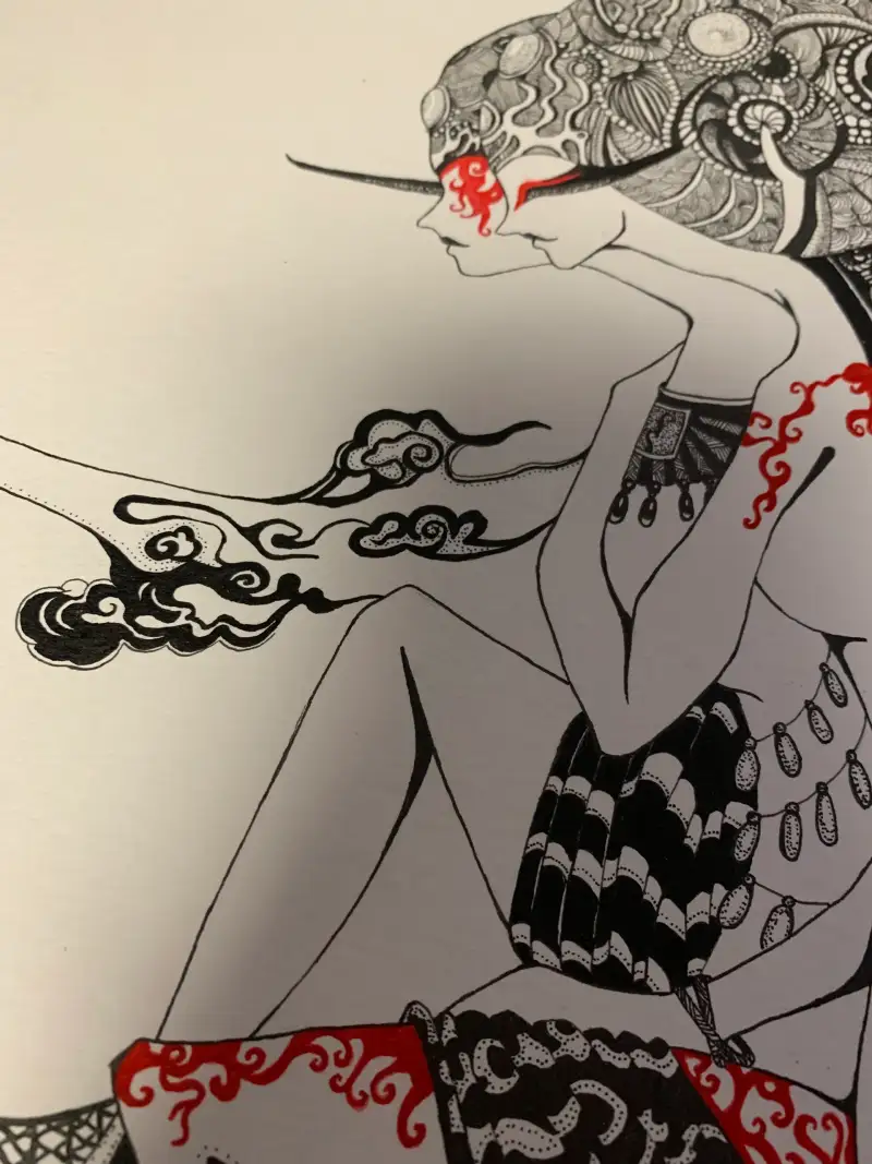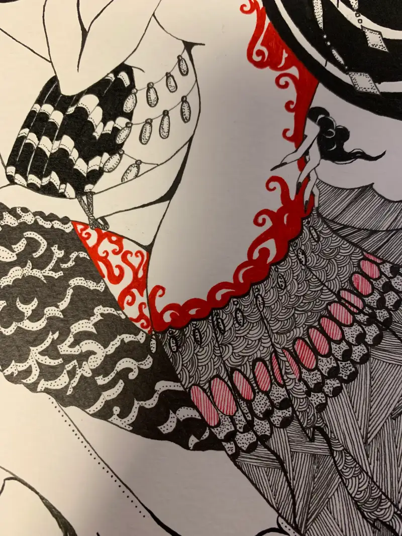 주로 스테들러와 쿠레타케 붓펜을 씁니다 머리부분이 색상이 좀 다를 거에요 확실히 쿠래타케붓펜이 엄청 진합니다 세밀한 부분을 붓펜으로 처리하기엔 제가 실력이 딸려서 ^^