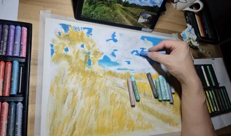 구름은 오일파스텔로 첫 도전 임다.