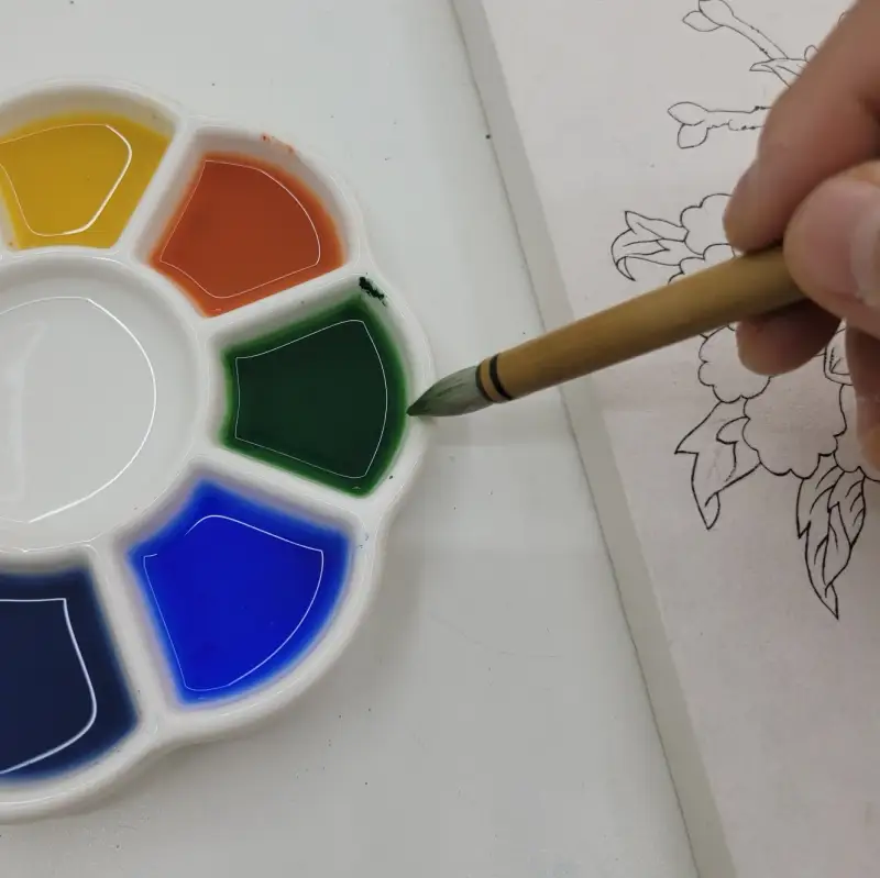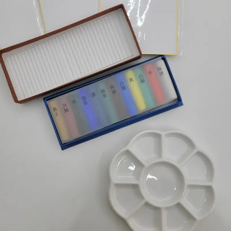 장점 : 은은한 색감, 안료를 녹이면서 차분해지는 느낌이 좋음, 동양화에 가장 자주 쓰인 색상들, 컴팩트함, 농도를 적절히 조절할 수 있음