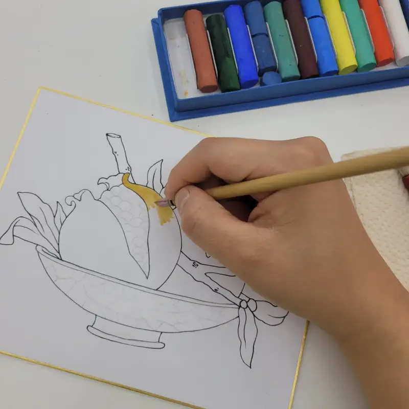 같이 받은 두방지 시카시 종이는 반수가 되어있지 않은 제품으로, 이 위에 바로 소과도를 그려보았습니다.