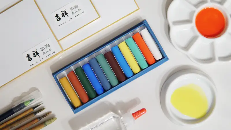 봉채 물감은 안료를 아교로 반죽해 단단한 막대 형태의 동양화 고체물감 이에요.