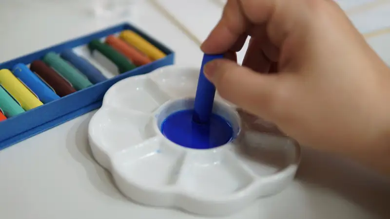 물을 묻히면 고체물감처럼 색이 녹아나와 투명 수채화 물감처럼 사용할 수 있어요.