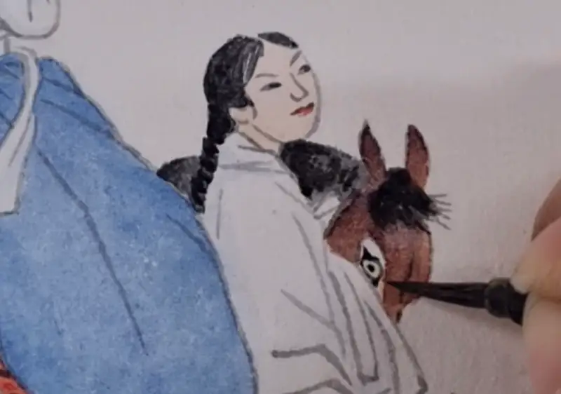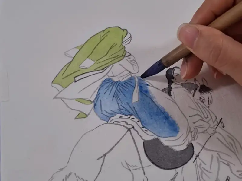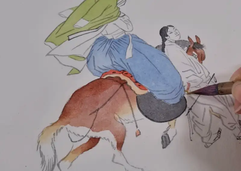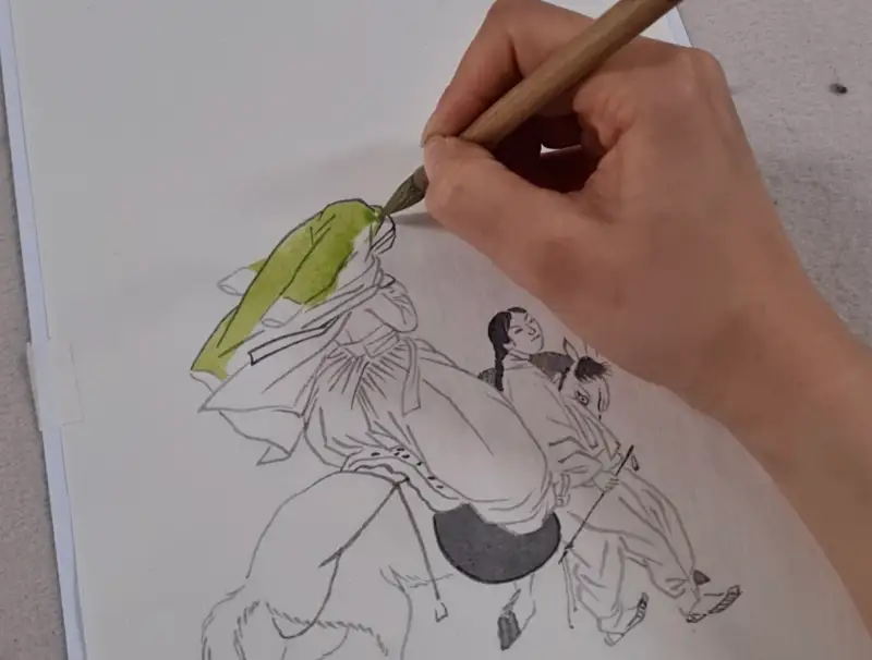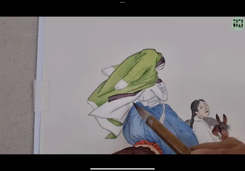 이번 길상 안채접시물담 체험단에 선정되어 이 물감을 사용해서 신윤복의 연소답청을 그려보았습니다!