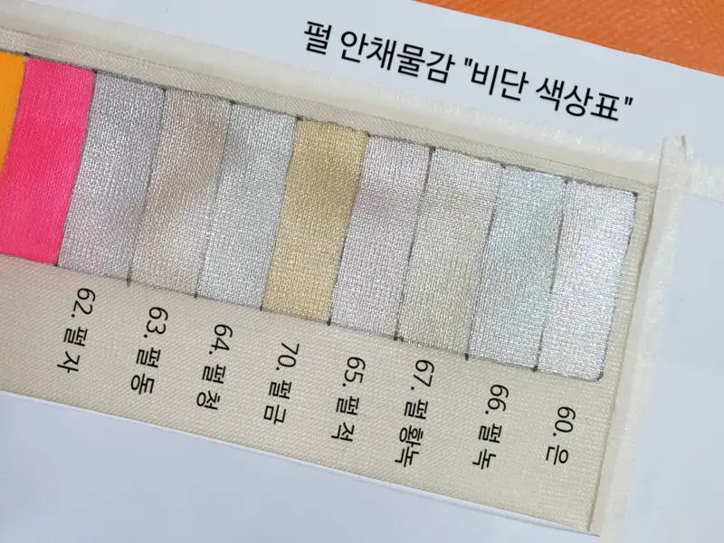 펄 안채물감도 비단위에 색상표로 만들었습니다. 한눈에 보기 좋게 만들어두면 작업에 아주 도움이 된답니다.