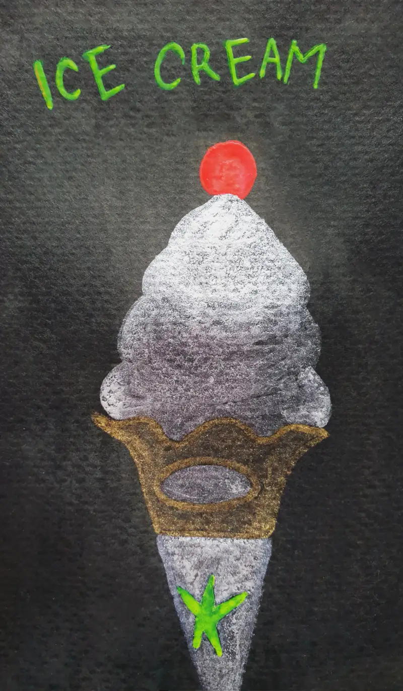 아이스크림 손잡이의 별과 글씨는 형광 안채물감 72 yellow 로 진하게 올렸는데 왠지 불 끄고 보면 형광빛으로