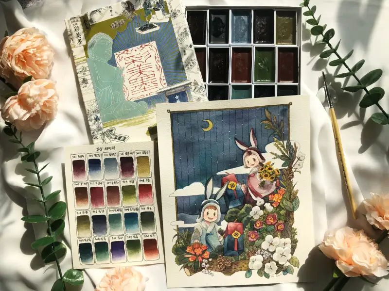 기회가 닿으면 길상 안채접시 고체물감도 사용해봐야겠습니다. ㅎㅎ