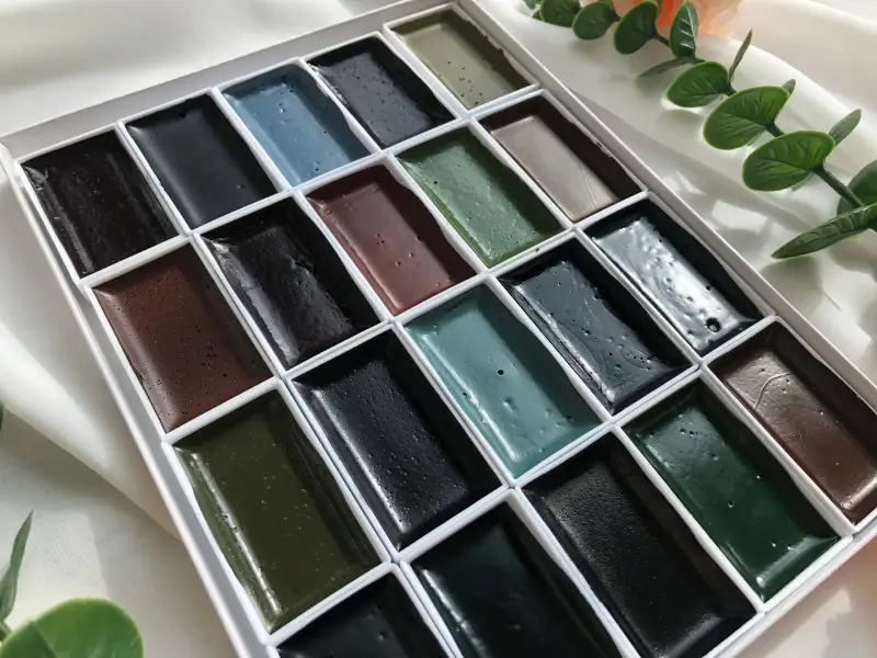 고급스럽게 톤다운된 고체물감이 들어있어요.