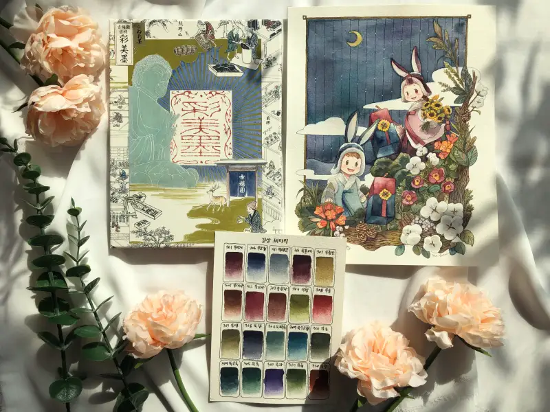 "길상 채미먹 안채 접시 고체 물감 20색 세트" 리뷰