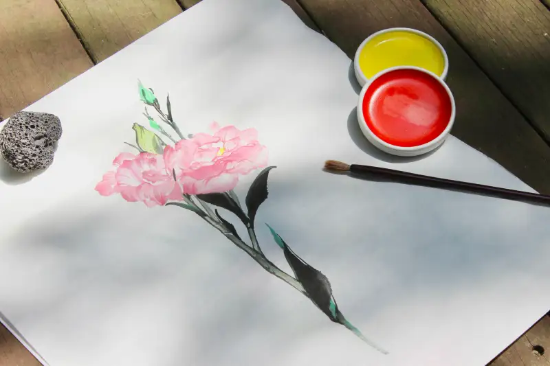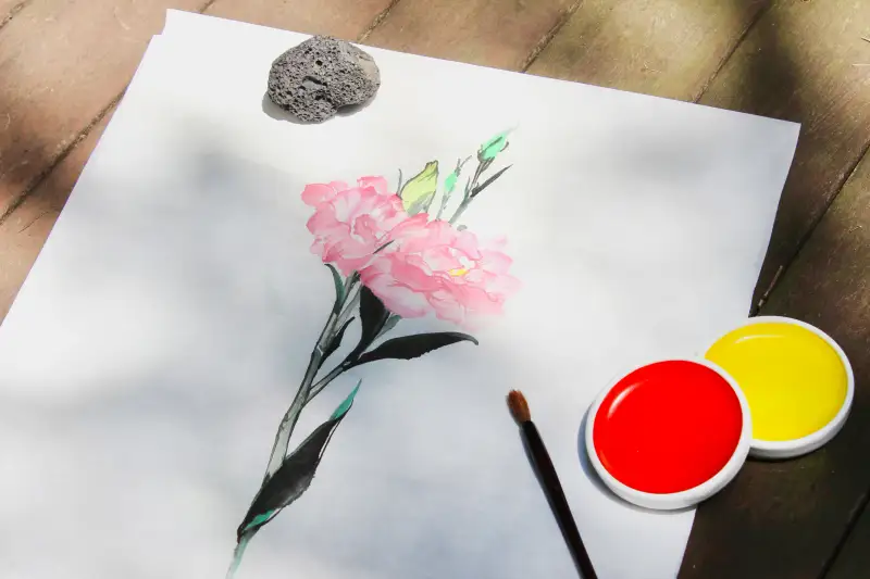 오늘은 꽃집 선생님이 정리해주신 리시안셔스 꽃 한송이로 길상 안채 접시 물감을 사용해 수묵담채화를 그려보려고 해요.