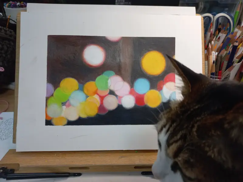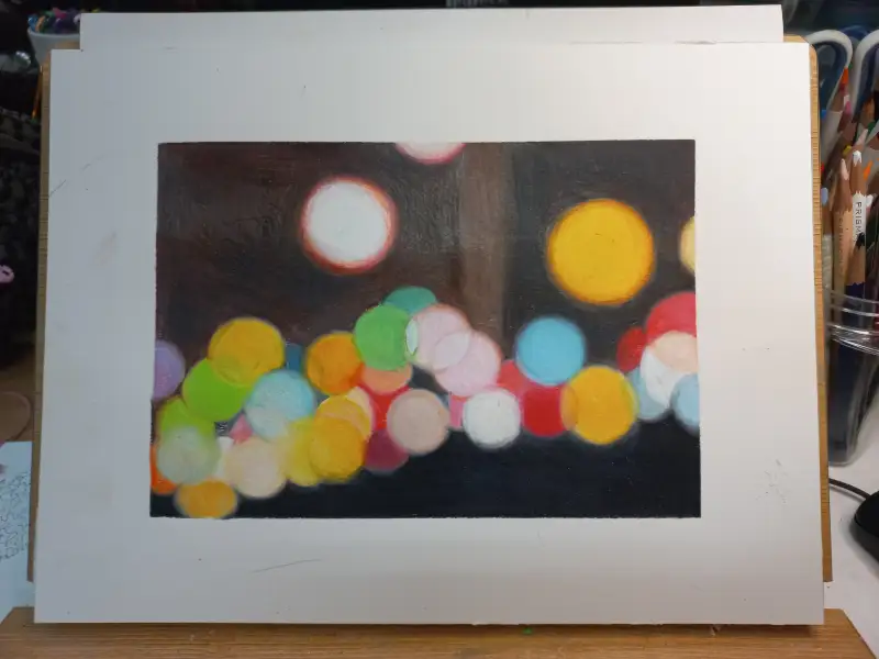 까렌다쉬 네오칼라1과 동아파블유성색연필, 그리고 프리즈마 유성색연필로 밤의 흐릿해진 풍경을 그려보았습니다.