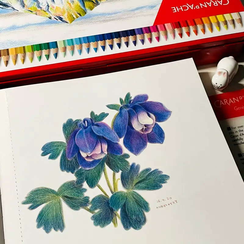 까렌다쉬 120색 유성색연필로 매발톱꽃 그리기