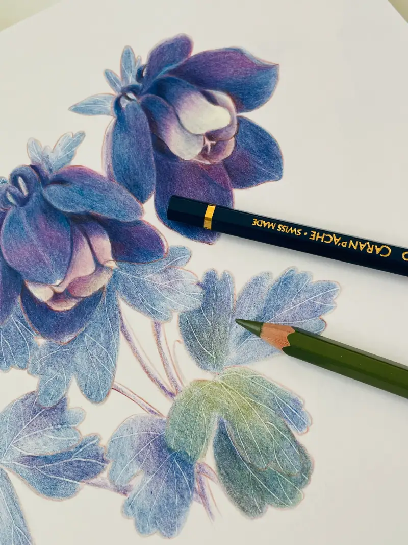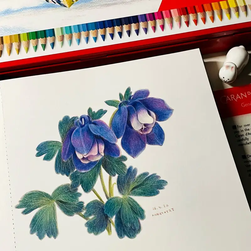 까렌다쉬 120색 유성색연필로 매발톱꽃 그리기 - 화방넷 커뮤니티
