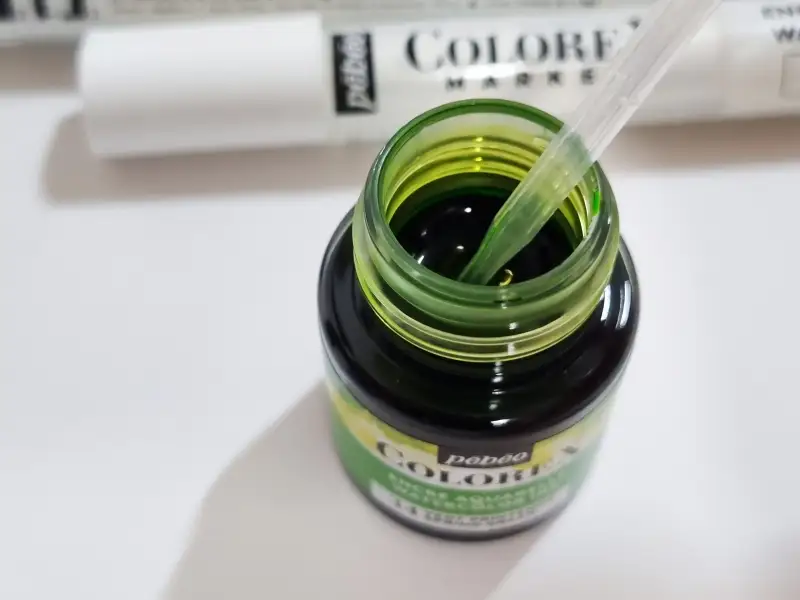 패키지 상단에는 컬러 갯수 만큼의 스포이드. 이 스포이드를 활용하여 컬러를 덜어내거나 작업에 직접 활용할 수도 있고 빈 마커에 잉크를 충전하는 용도로 사용된다.