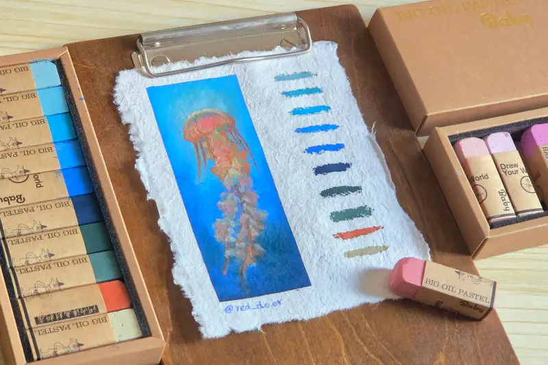 바다가 생각나는 그런 색 구성이라 저는 해파리를 그려봤어요🪼