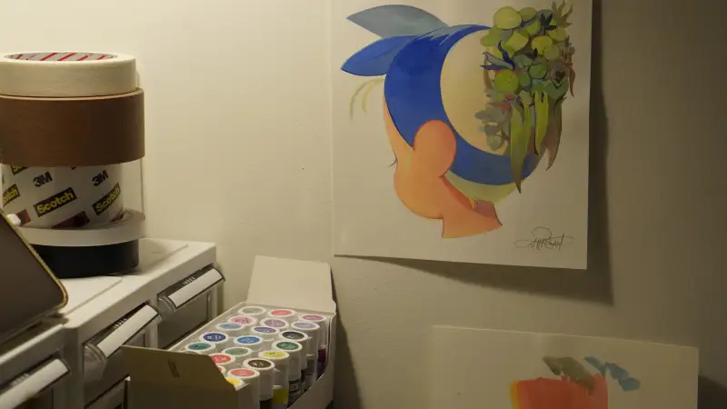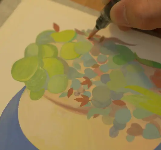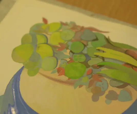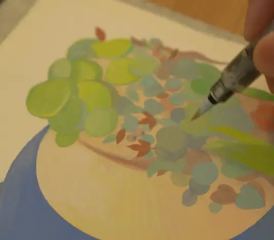 식물들 자리는 일부러 레이어를 쌓으면서 그리는게 가능할지를 테스트 해보려고 한거고 앞에 얼굴부분은 깔끔하게 떨어지게끔 그려지면 얼마나 발색이 좋을지를 보고 싶었어요. 여러가지 기법을 보고 싶으시면 참고해보시면 좋을 것 같습니다.