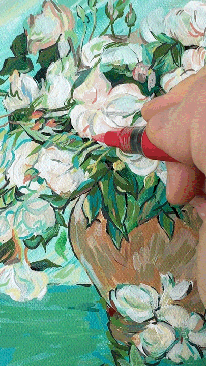 에라 캔버스에 아크릴마카로 스케치를 한 뒤 쉴드에픽 아크릴물감으로 고흐 작품에 두터운 마띠에르 느낌을 살려주고
