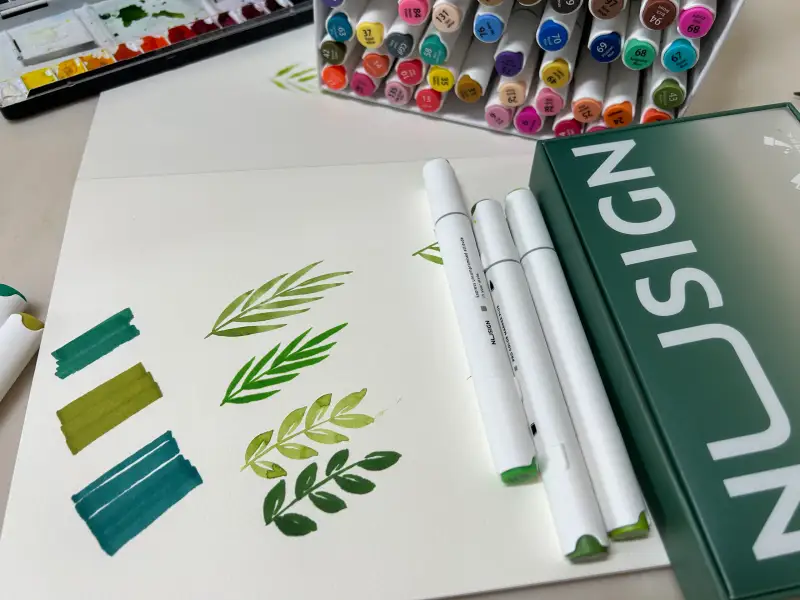 수채화붓과 마카의 부드러운 촉을 이용하여 사용성을 비교해 보았어요.  붓은 파렛트 물감 물 등등 여러거지 재료를 준비해야 하지만 마카는 뚜컹만 딱 열어서 쓱싹 그리면 되니 너무 간편하고 좋았어요. 붓처럼 세밀한 표현은 어렵지만.^^ 그래도 그 외의 장점이 많네요.  붓은 물조절도 잘 해야 하고 마르기를 기다려야 하지만 누사인 마카는 수성마카라 수채호 물감의 부드러운 표현도 쉽게 표현 됩니다.