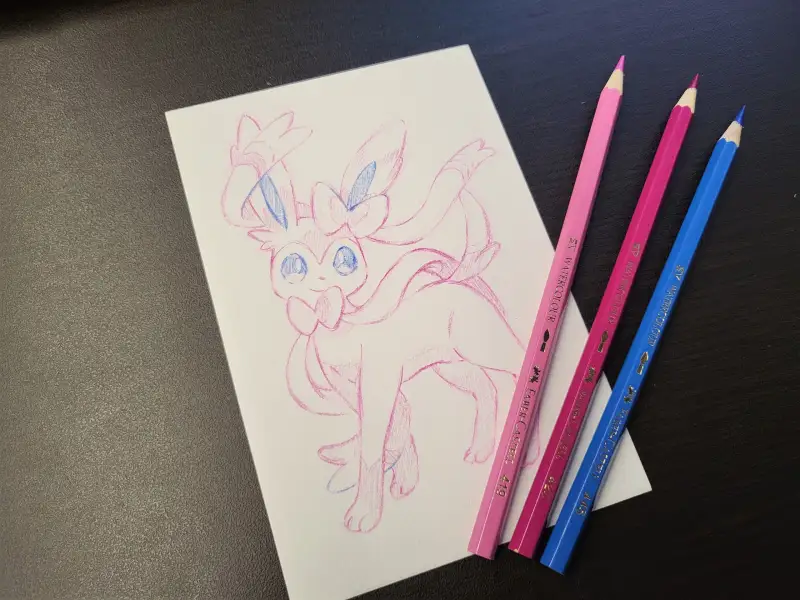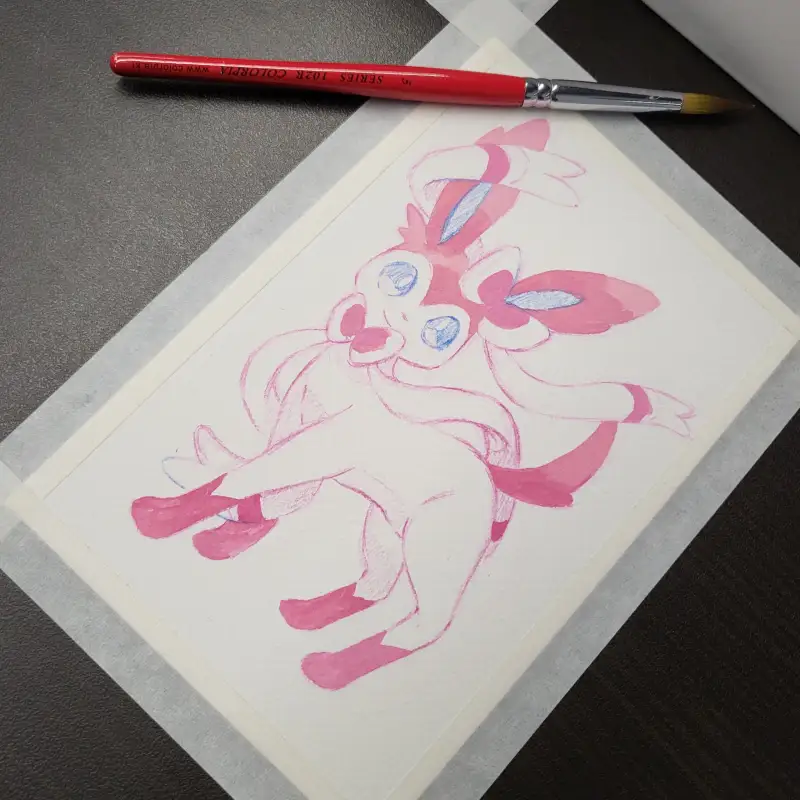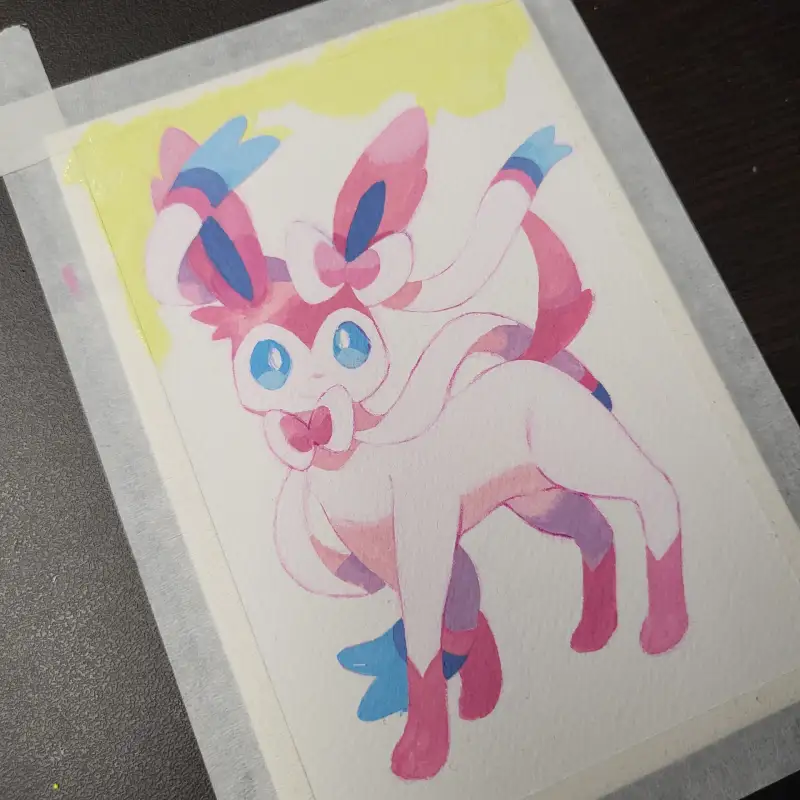 이번에는 포스터칼라로 포켓몬.. 님피아를 그려보았습니다..