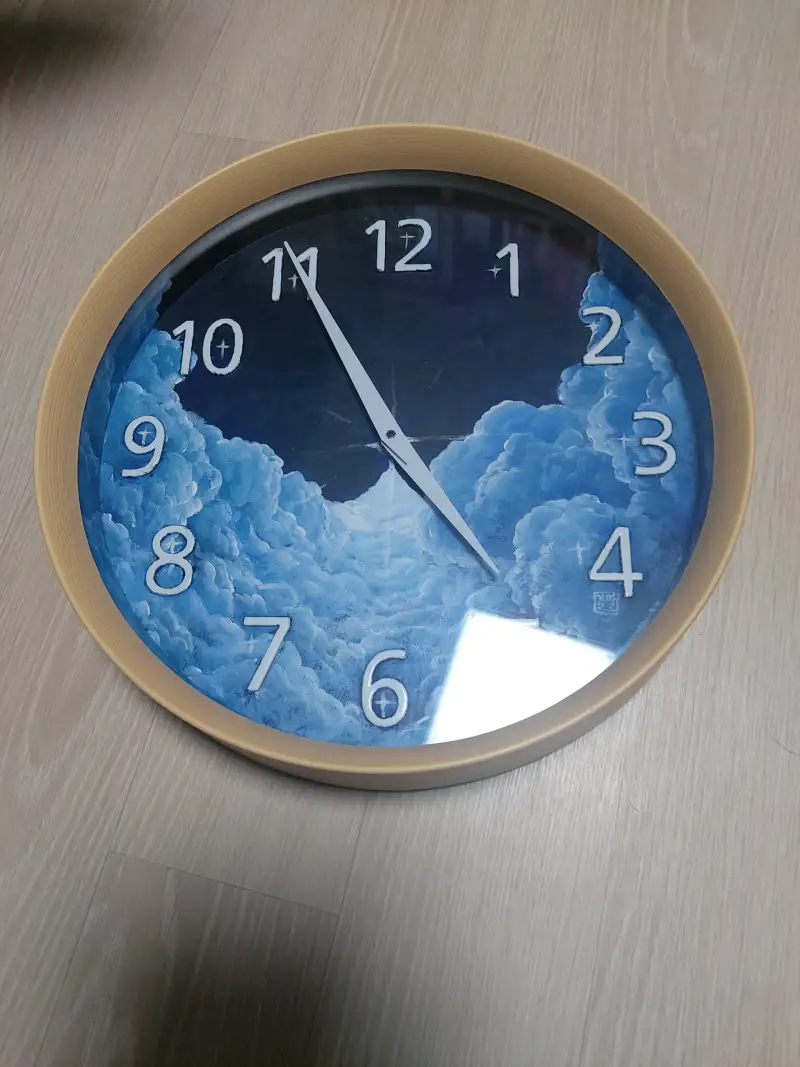 시계 제품 자체는 작년에 샀던 다ㅇ소 무음시계입니다. 처음 포장 박스만 봤을 땐 블랙 앤 화이트인 줄 알았는데, 웬걸, 연한 하늘색 바탕에 하얀색 숫자들로 채워져 있는 걸 사버렸지 뭐예요 😅
