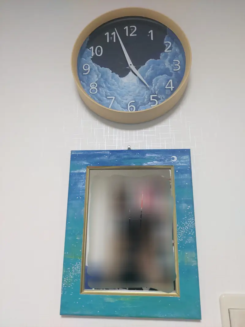 거울과 함께 한 커스텀된 시계입니다! 벽에 걸어둔 모습이고요~