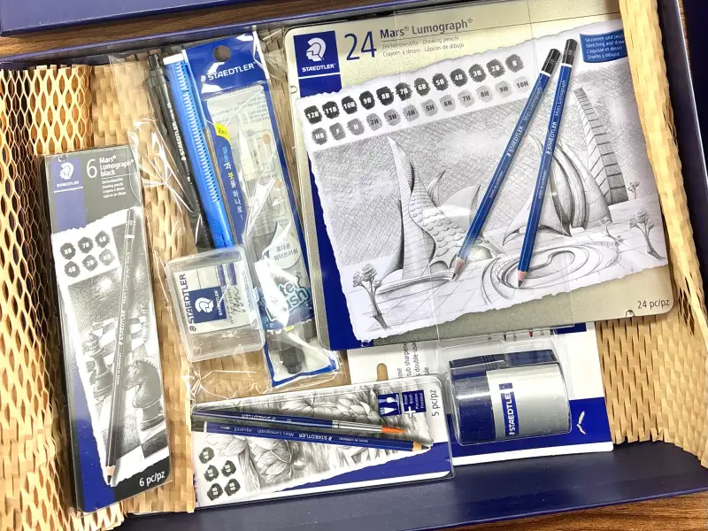 스테들러 미술연필 세트 3종과 여러 가지 미술 도구들이 한가득 들어있었답니다.