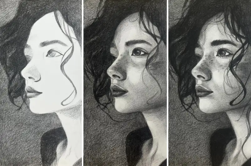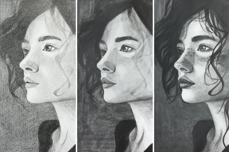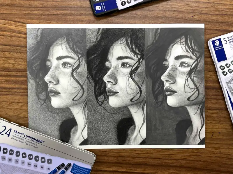 이번엔 각 연필 세트의 특징을 더 잘 파악해 보기 위해 동일한 그림을 세 가지 스테들러 미술연필 세트로 그려보았어요.