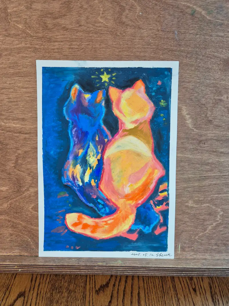 아래가 제가 그린 겁니다. 시넬리에 오일파스텔을 사용했는데특정 색깔은 칠할 때 레이어드가 안 되고 자꾸 밀리더라고요. 이런 느낌의 그림도 그려보고 싶어서 시도하게 됐습니다~