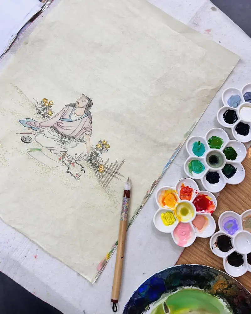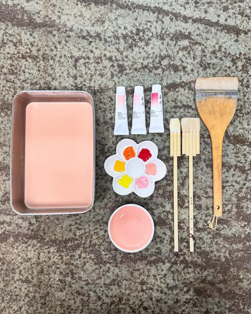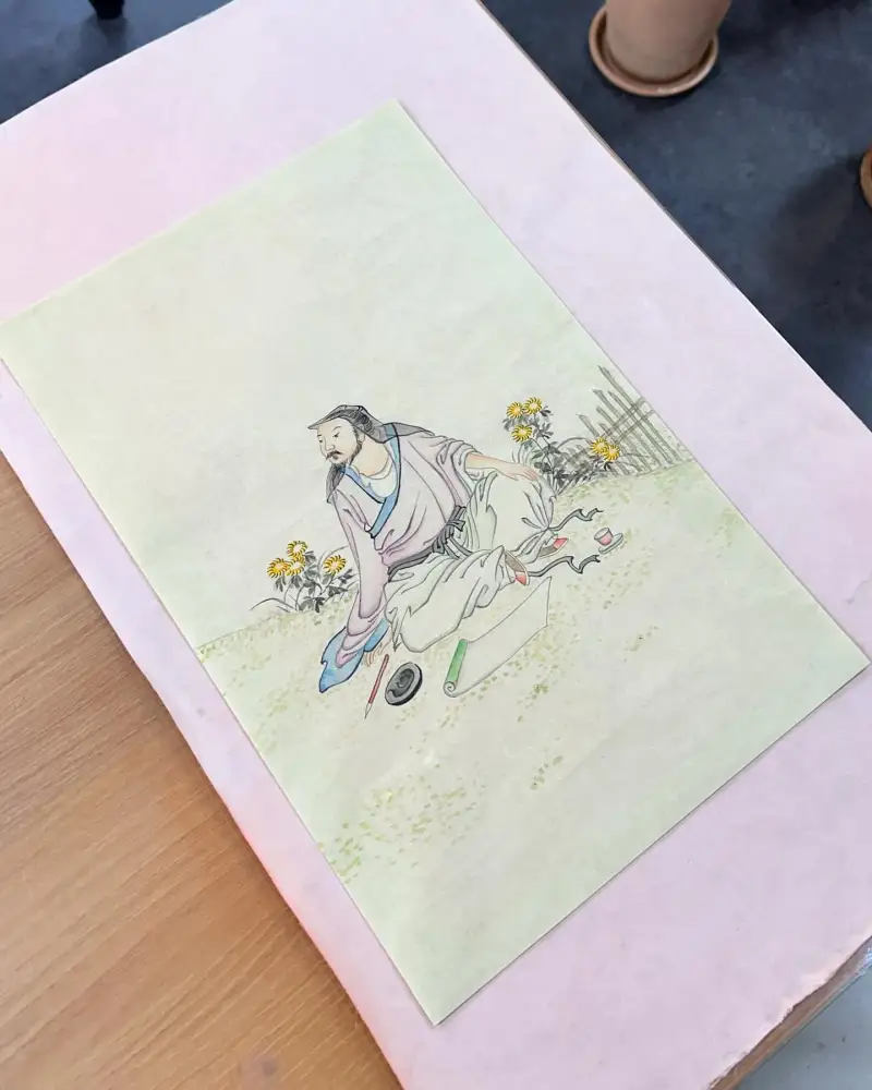 치자 열매와 채향 산호색으로 물들인 한지를 준비했고,🪸