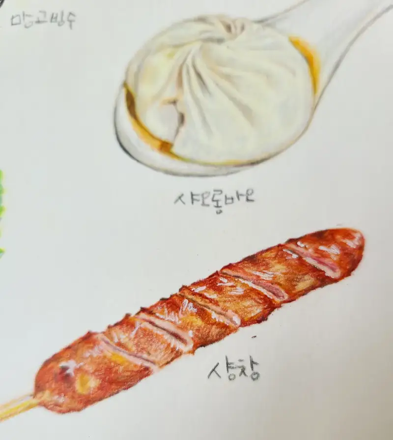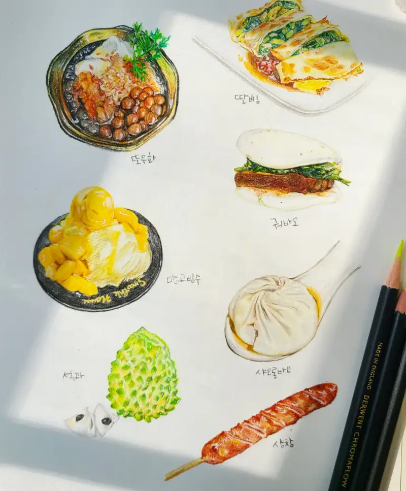 화방넷에서 지원해주신 더웬트크로마플로우 유성색연필로 그려본 대만음식일러스트예요!!