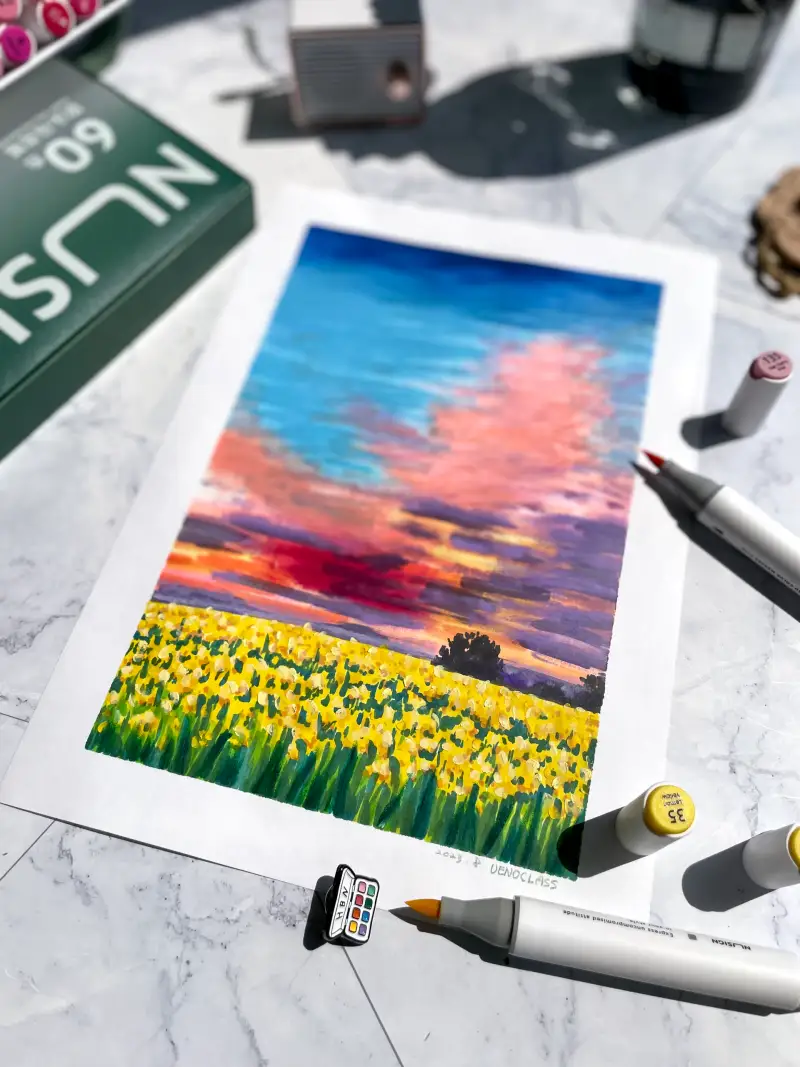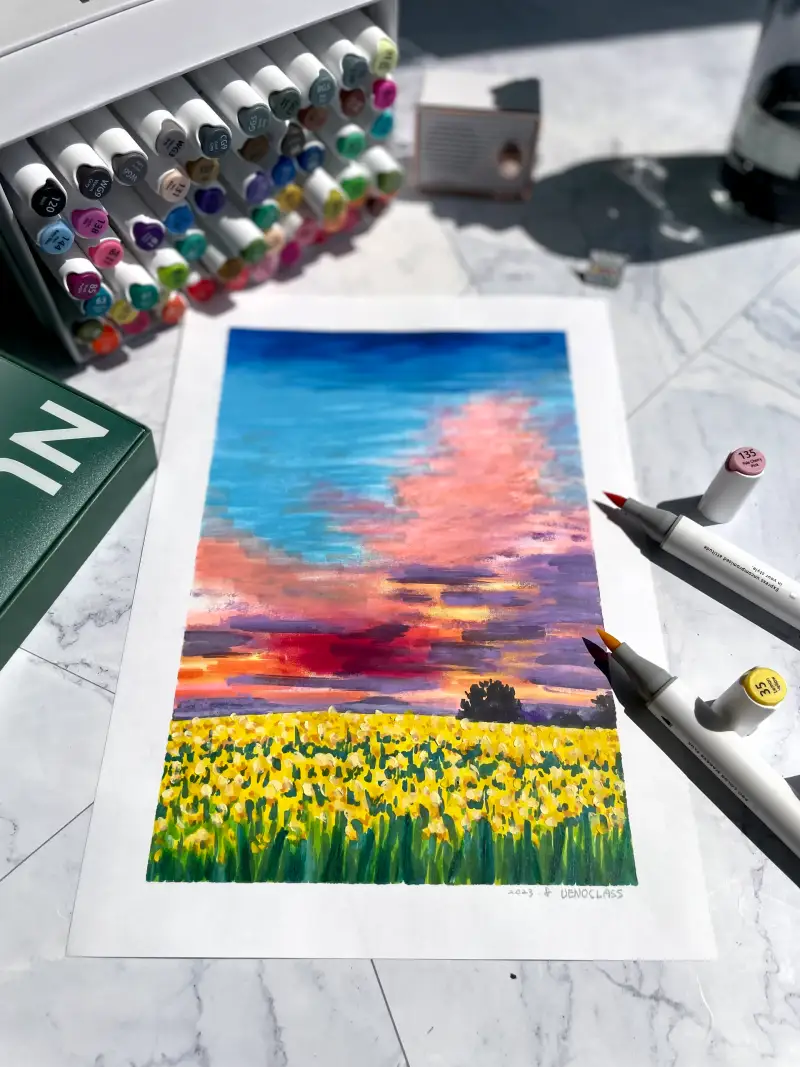 마카로 채색한 다음