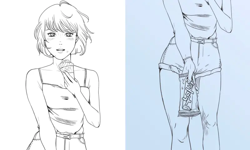 그래서 그냥 스케치 완성해버리고 집 와서 와콤원으로 선 땄습니다.