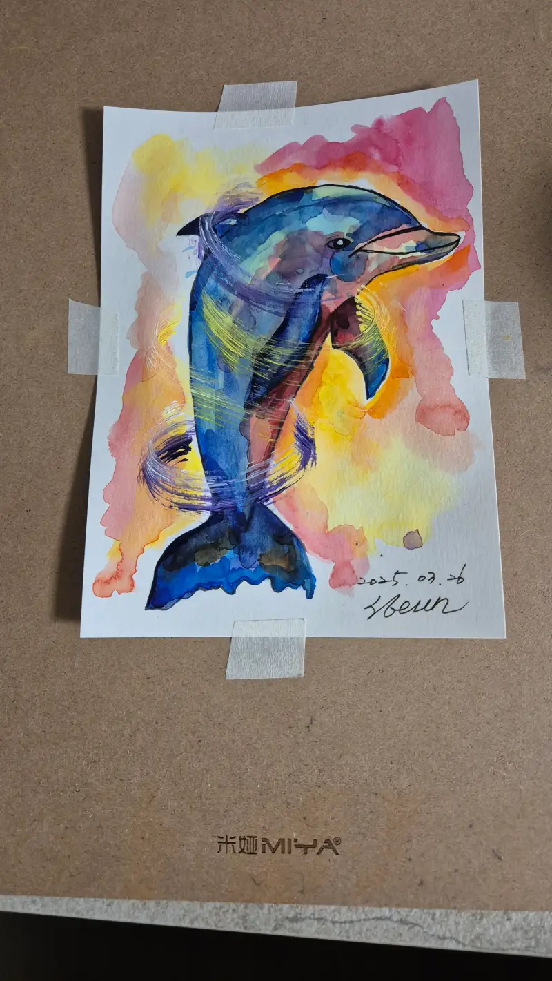 예전부터 돌고래를 그리고 싶었는데 자신이 없어 차일피일 미루다 그려봤습니다. 이미지 출처는 핀터레스트고요. 제 느낌대로 작업했습니다.