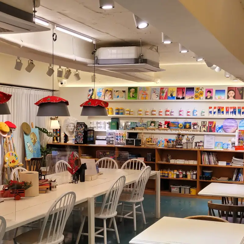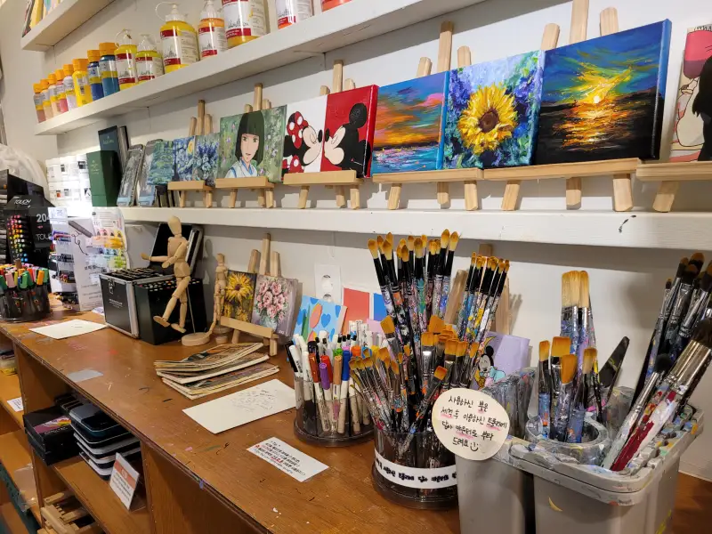 마음껏 사용할 수 있는 카페 안의 미술도구들~