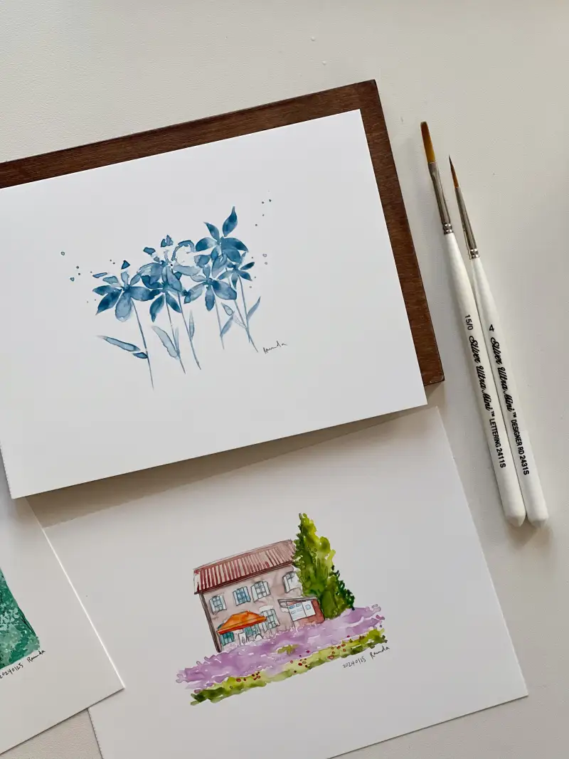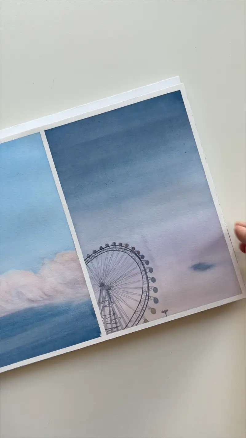 1. 이 그림들은 리전 스톤헨지 아쿠아 스케치북에 두개의 하늘을 나눠서 그려봤어요. 세목이라 빠르게 마를까봐 걱정했는데 생각보다 물이 마르는 속도도 괜찮았고 그라데이션 표현도 자연스럽게 잘 잡혔어요! :)