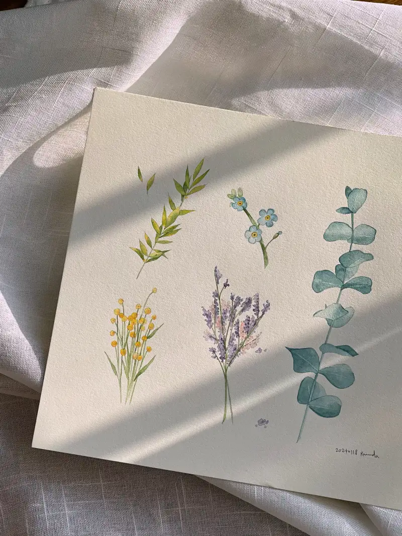 유포미디엄 제품은 좀 더 몽글몽글하고 색들이 자연스럽게 합쳐지는 느낌을 경험해보고 싶다면 사용해봐도 좋을 것 같아요. 그리고 수채화가 아니라 좀 더 꾸덕꾸덕한 미술 재료들 (오일파스텔, 마카, 과슈 등) 의 재료를 이용한다면 좀 더 선명하고 원하는 방향의 작품을 완성할 수도 있어요!