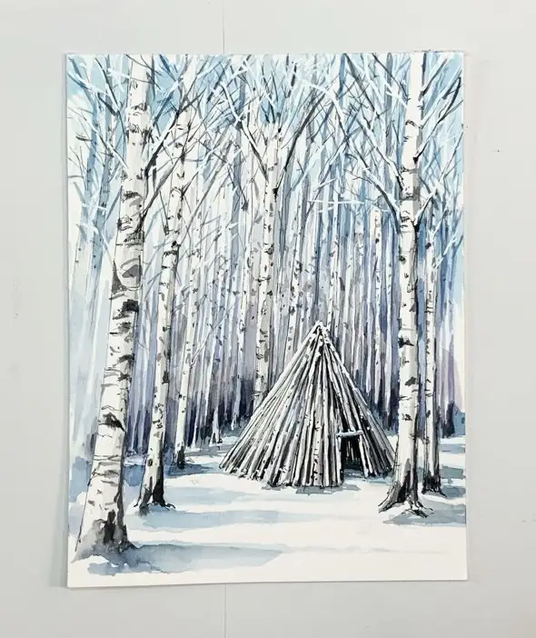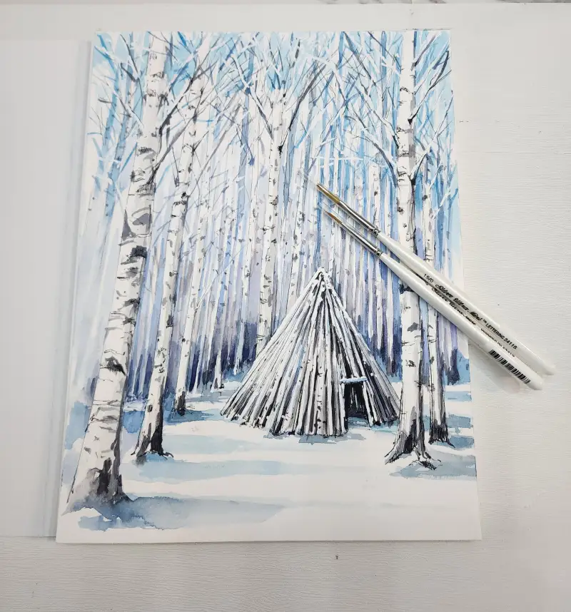 협찬받은 실버브러쉬가 얇아서 좁은 면을 많이 그려야되는 자작나무숲을 그림주제로 선택해서 펜과 수채화물감으로 그림을 그려봤는데 아주 만족한 결과가 나왔어요