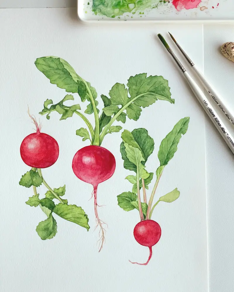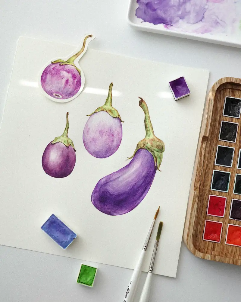 세가지 스케치북에 수채화,과슈 물감으로 채소들을 그려보았어요!🥕🍆