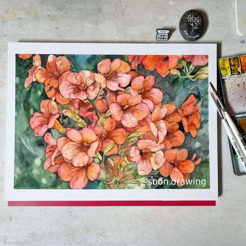 250g이라 살짝 얇긴한데 물을 많이 쓰지않는 꽃그림 그리기엔 괜찮아요.