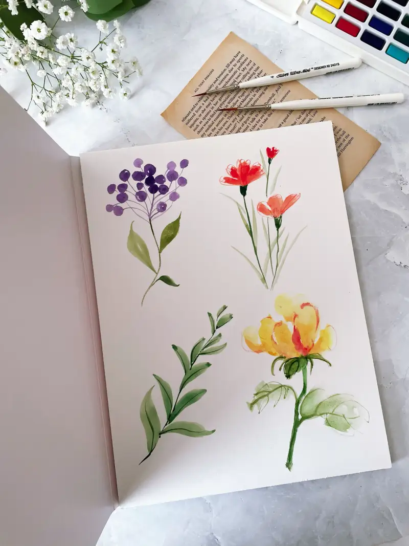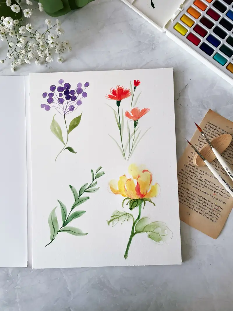 다음은 수채화로 일러스트 꽃그림